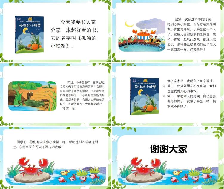大家好!今天我要和大家分享一本超好看的书,它的名字叫《孤独的小螃蟹》。