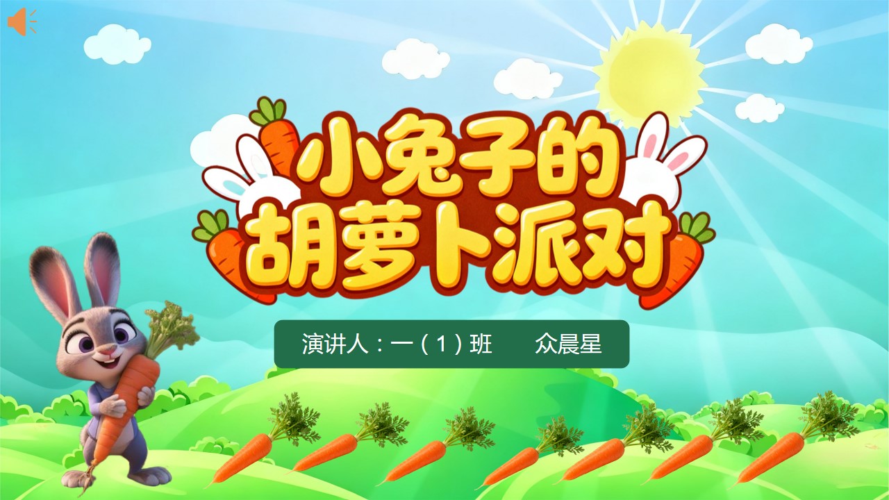 大家好,我是一年级一班的众晨星,很高兴和大家一起分享,我今天分享的数学小故事是《小兔子的胡萝卜派对》。