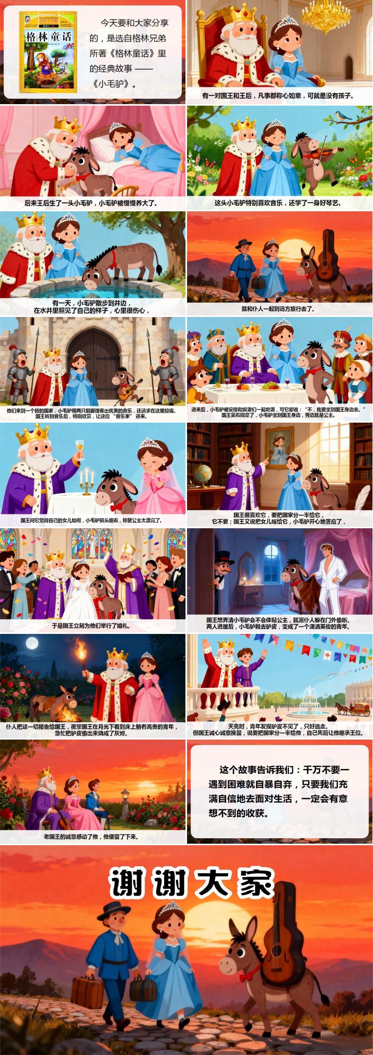 大家好!我是三年级一班的众晨星,今天要和大家分享的,是选自格林兄弟所著《格林童话》里的经典故事 ——《小毛驴》。