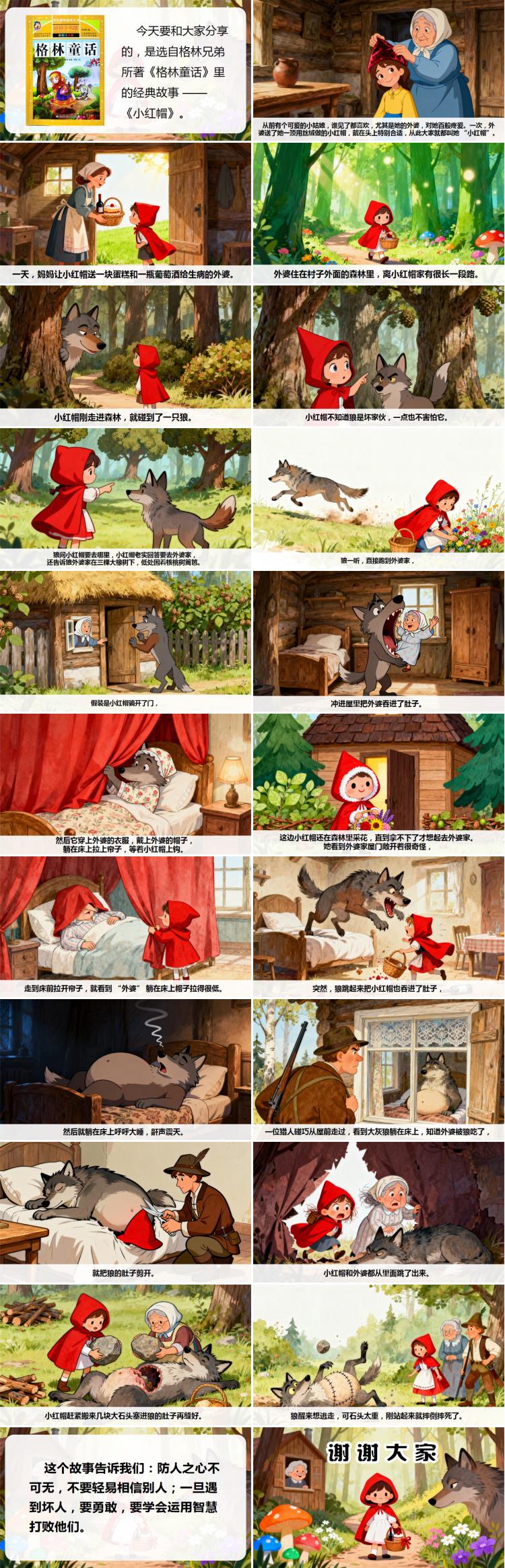 大家好!我是三年级一班的众晨星,今天要和大家分享的,是选自格林兄弟所著《格林童话》里的经典故事 ——《小红帽》。