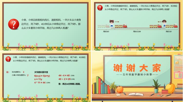 大家好,我是五年级1班的方小舟,今天我要分享的内容是数学故事《相遇问题》。