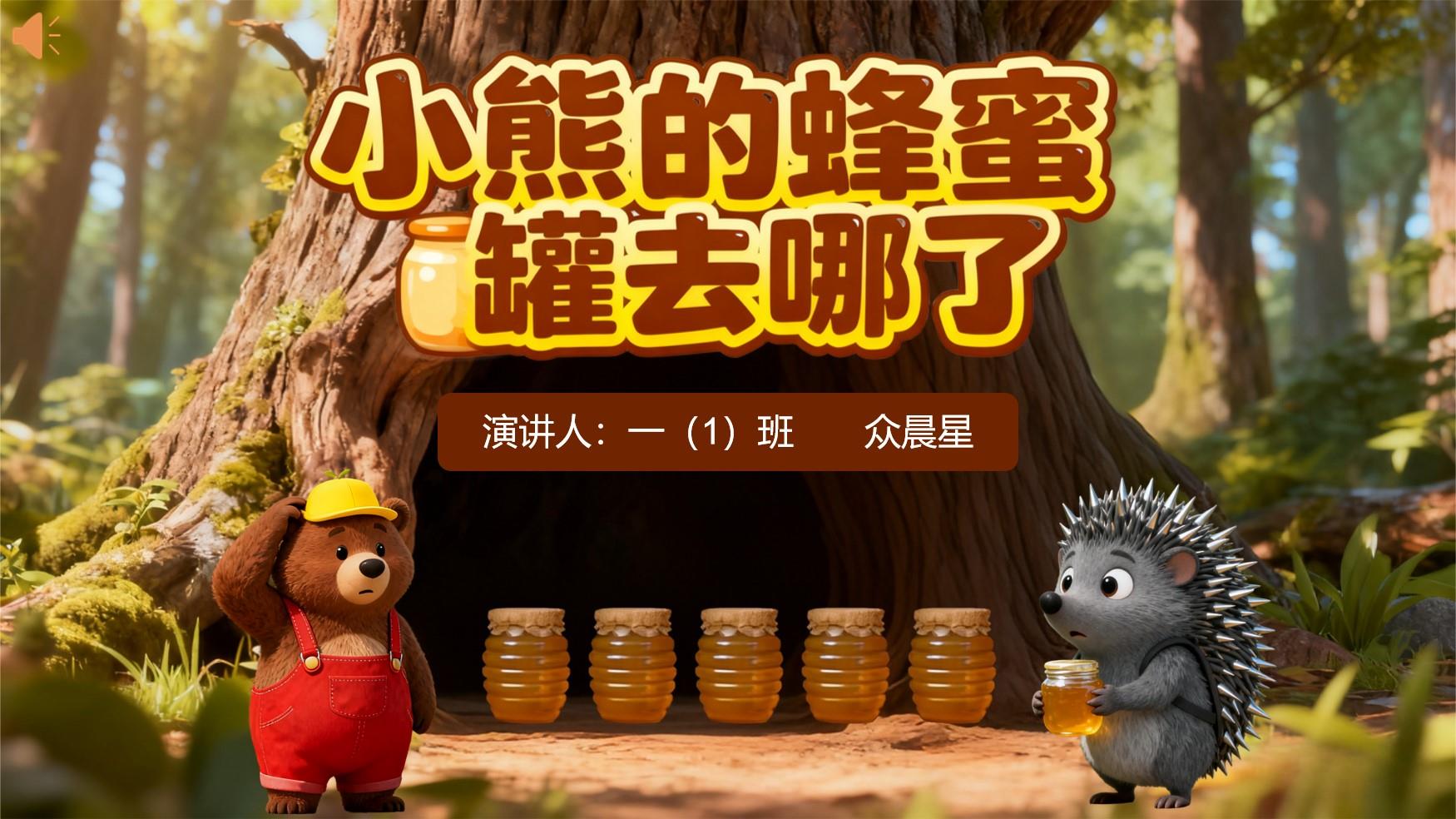 大家好,我是一年级一班的众晨星,今天我分享的数学小故事是《小熊的蜂蜜罐去哪了》