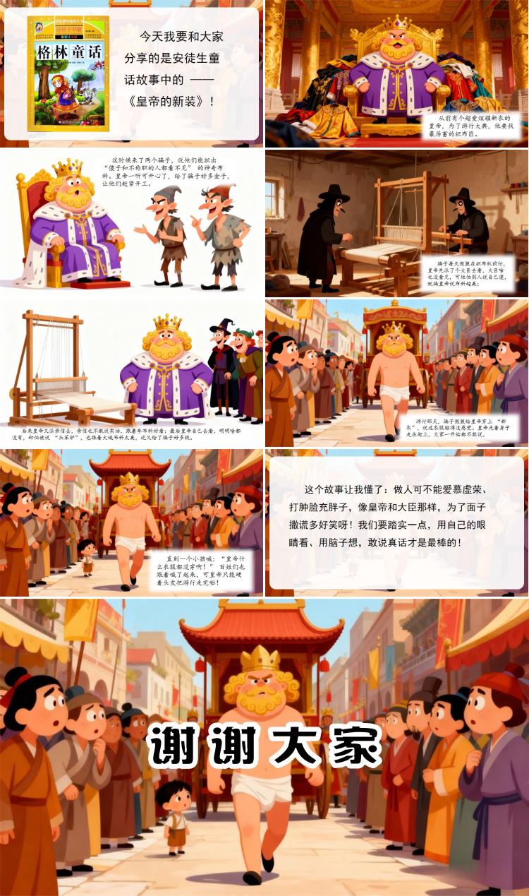 大家好!我是三年级一班的众晨星,今天我要和大家分享的是安徒生童话故事中的 ——《皇帝的新装》!