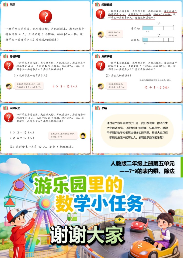 通过这个游乐园里的小任务,我们发现乘、除法在生活中随处可见。只要我们仔细观察、认真思考,就能用学到的数学知识解决很多实际问题。希望大家以后都能做生活中的有心人,发现更多数学的乐趣!