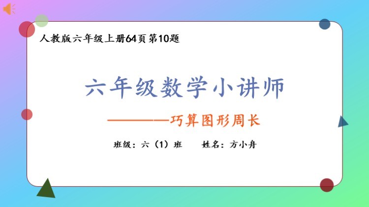 大家好!我是六年级一班的方小舟 ,今天我要和大家分享的数学题目是数学书上64页,第10题,