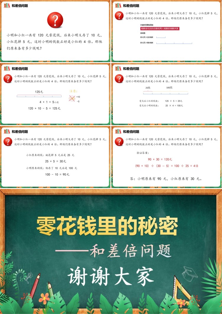 同学们,以后遇到和倍问题,就像我们今天这样,先整理信息,再画线段图,一步步计算,最后检验答案,再难的题目也能轻松搞定!谢谢大家!