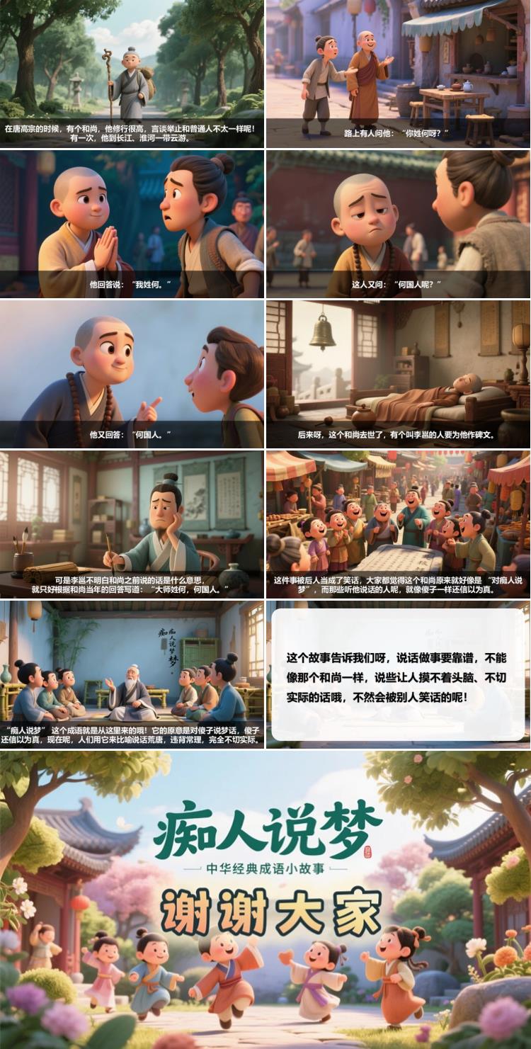 同学们,“痴人说梦” 这个成语就是从这里来的哦!它的原意是对傻子说梦话,傻子还信以为真,现在呢,人们用它来比喻说话荒唐,违背常理,完全不切实际。这个故事告诉我们呀,说话做事要靠谱,不能像那个和尚一样,说些让人摸不着头脑、不切实际的话哦,不然会被别人笑话的呢!