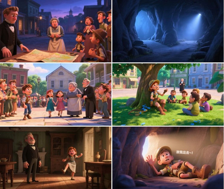 旁白:就这样,安妮和贝琪平安地走出了山洞,小镇里紧张的气氛缓解了不少。回到小镇的安妮经过休养,身体也恢复了健康,在镇上的大树下宣讲她的精彩经历!