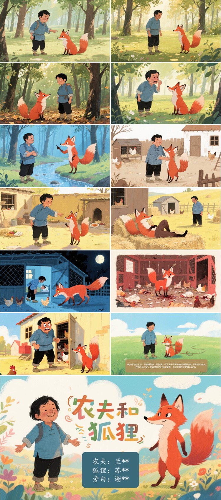 “好吧,”农夫和狐狸商议,“假如你说的都是心里话,我愿意真心实意帮助你。为了让你摆脱罪恶,自信其力,我可以雇你看守我的鸡舍,保护小鸡不受别的狐狸偷袭。作为一只狐狸,你最清楚狐狸们的诡计。你只要好好干,挑起这副担子还是很适合的。亲家母,在我那里,保证不会让你受穷挨饿,日子一定让你过得称心如意。”