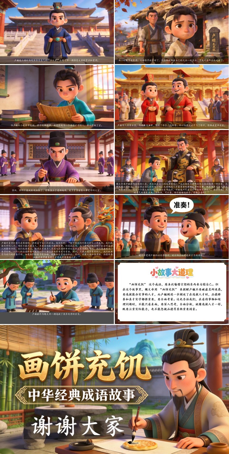 “画饼充饥” 这个成语,原本比喻借空想的东西来安慰自己。但在这个故事里,魏文帝用 “画饼充饥” 来提醒卢毓不要被虚名所迷惑,要选拔能办实事的人才,而卢毓则进一步阐述了在选拔人才时,品德修养和真才实学都很重要,要全面考量。这也告诉我们,在看待事物和处理问题时,不能只看表面,要深入思考,全面分析,就像选拔人才一样,既要注重实际能力,也不能忽视品德等其他重要因素。