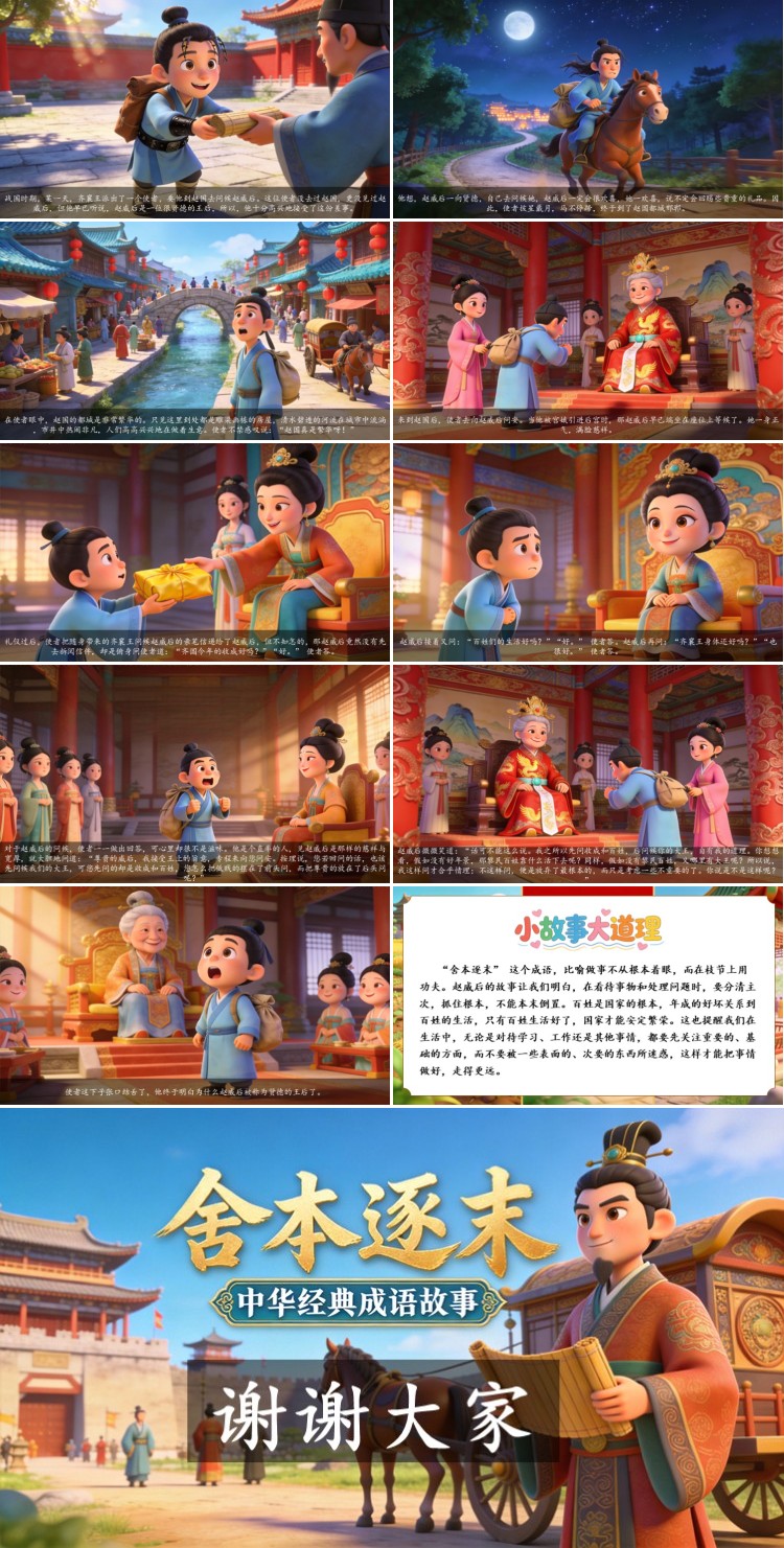 “舍本逐末” 这个成语,比喻做事不从根本着眼,而在枝节上用功夫。赵威后的故事让我们明白,在看待事物和处理问题时,要分清主次,抓住根本,不能本末倒置。百姓是国家的根本,年成的好坏关系到百姓的生活,只有百姓生活好了,国家才能安定繁荣。这也提醒我们在生活中,无论是对待学习、工作还是其他事情,都要先关注重要的、基础的方面,而不要被一些表面的、次要的东西所迷惑,这样才能把事情做好,走得更远。