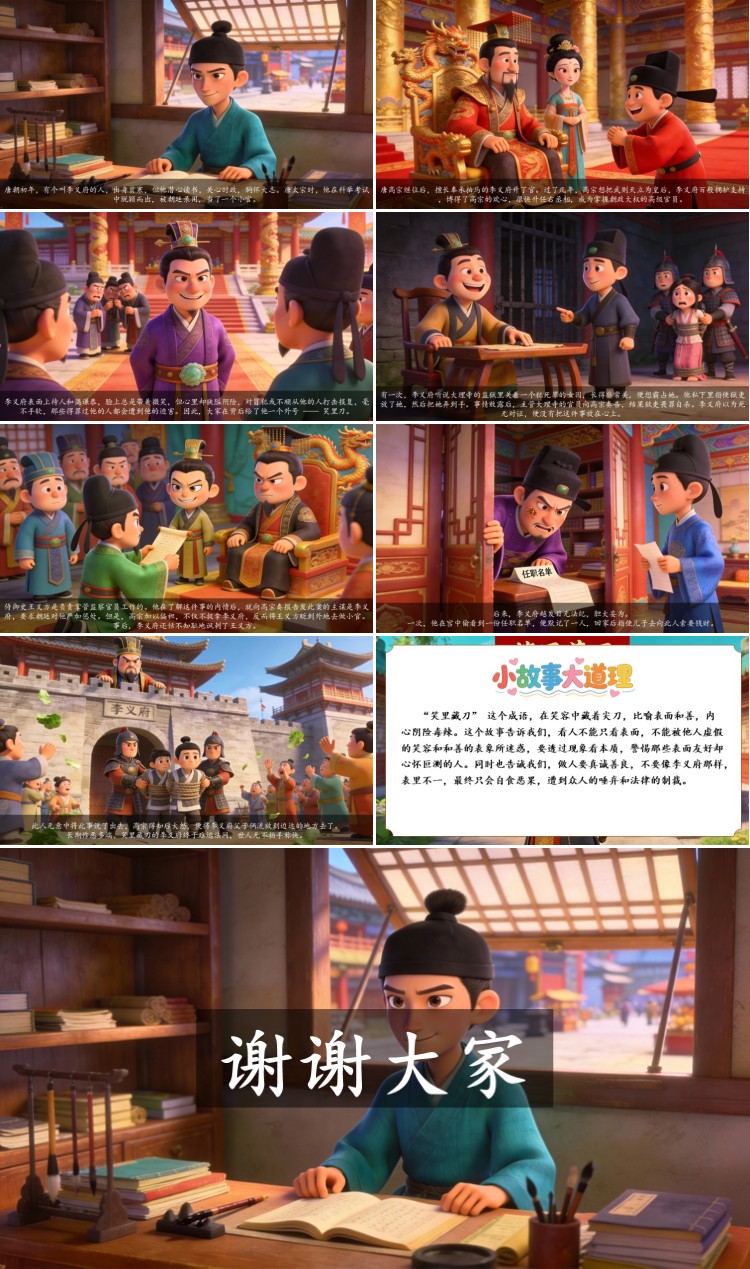 “笑里藏刀” 这个成语,在笑容中藏着尖刀,比喻表面和善,内心阴险毒辣。这个故事告诉我们,看人不能只看表面,不能被他人虚假的笑容和和善的表象所迷惑,要透过现象看本质,警惕那些表面友好却心怀叵测的人。同时也告诫我们,做人要真诚善良,不要像李义府那样,表里不一,最终只会自食恶果,遭到众人的唾弃和法律的制裁。
