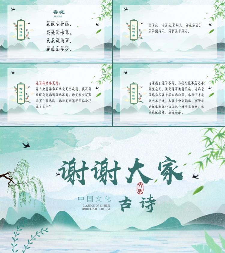 7-00005 《春晓》古诗词PPT模板