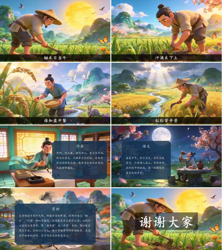 方舟绘本PPT首页 > 古诗 > 7-00018 《悯农》其二古诗词PPT模板