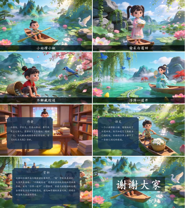 方舟绘本PPT首页 > 古诗 > 7-00023 《池上》古诗词PPT模板
