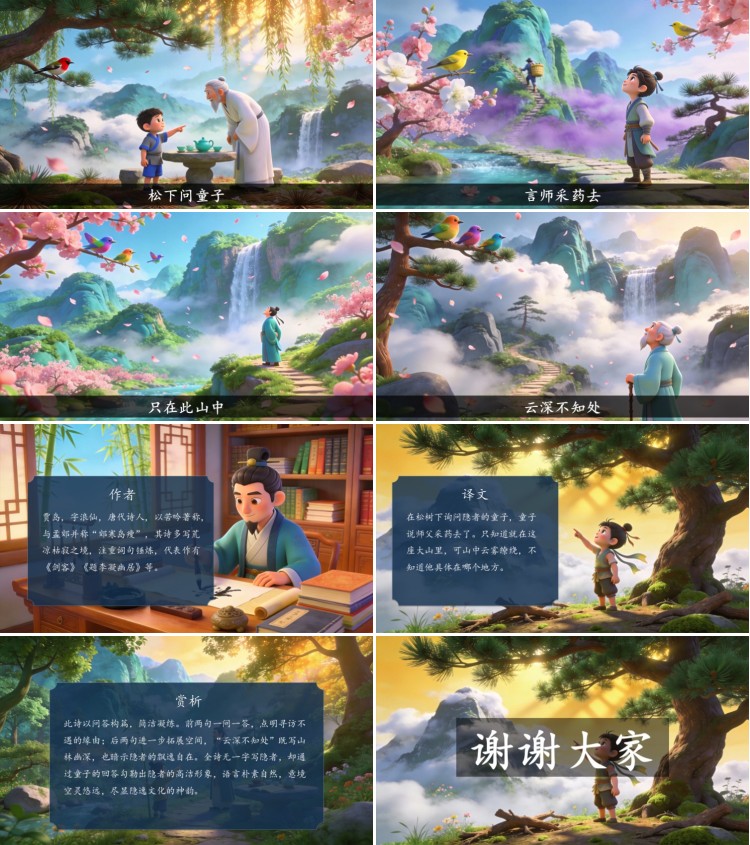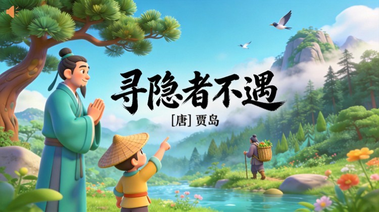 方舟绘本PPT首页 > 古诗 > 7-00031 《寻隐者不遇》古诗词PPT模板