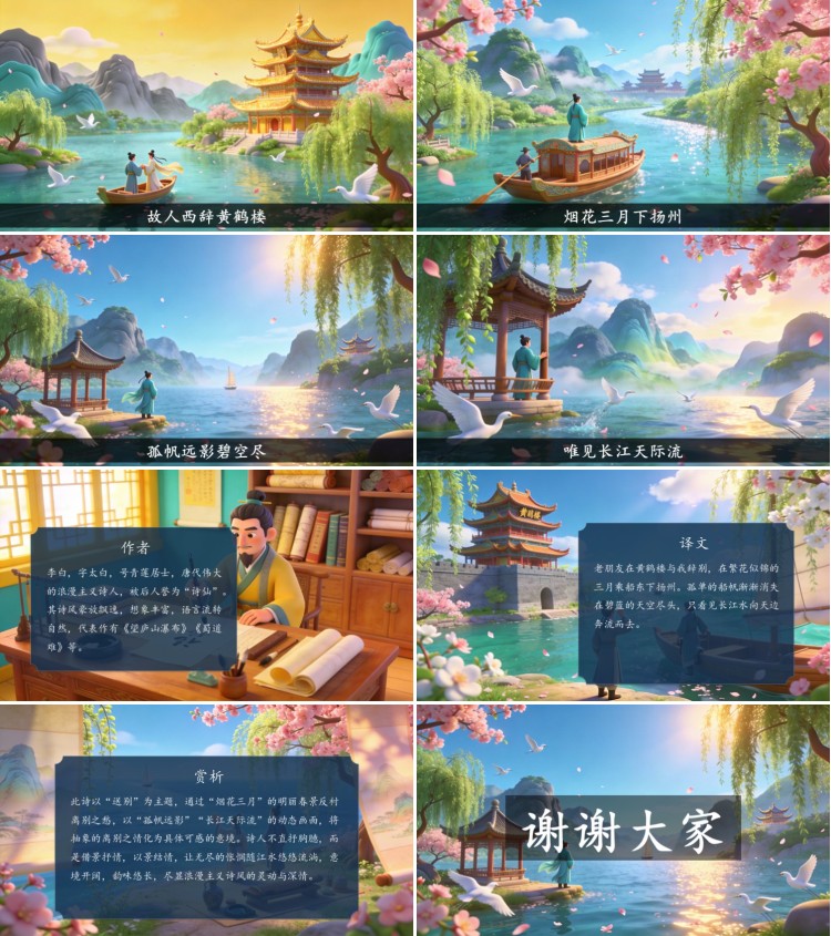 方舟绘本PPT首页 > 古诗 > 7-00037 《黄鹤楼送孟浩然之广陵》古诗词PPT模板