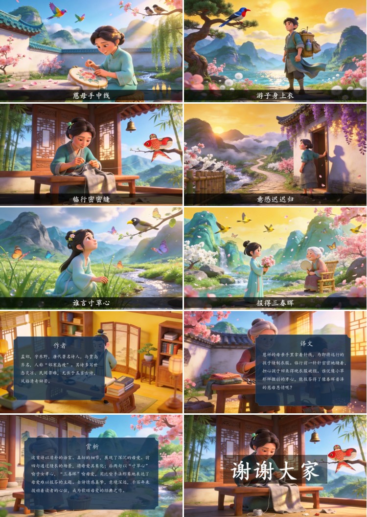 方舟绘本PPT首页 > 古诗 > 7-00039 《游子吟》古诗词PPT模板