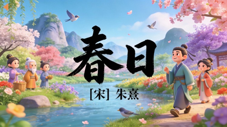 方舟绘本PPT首页 > 古诗 > 7-00048 《春日》古诗词PPT模板