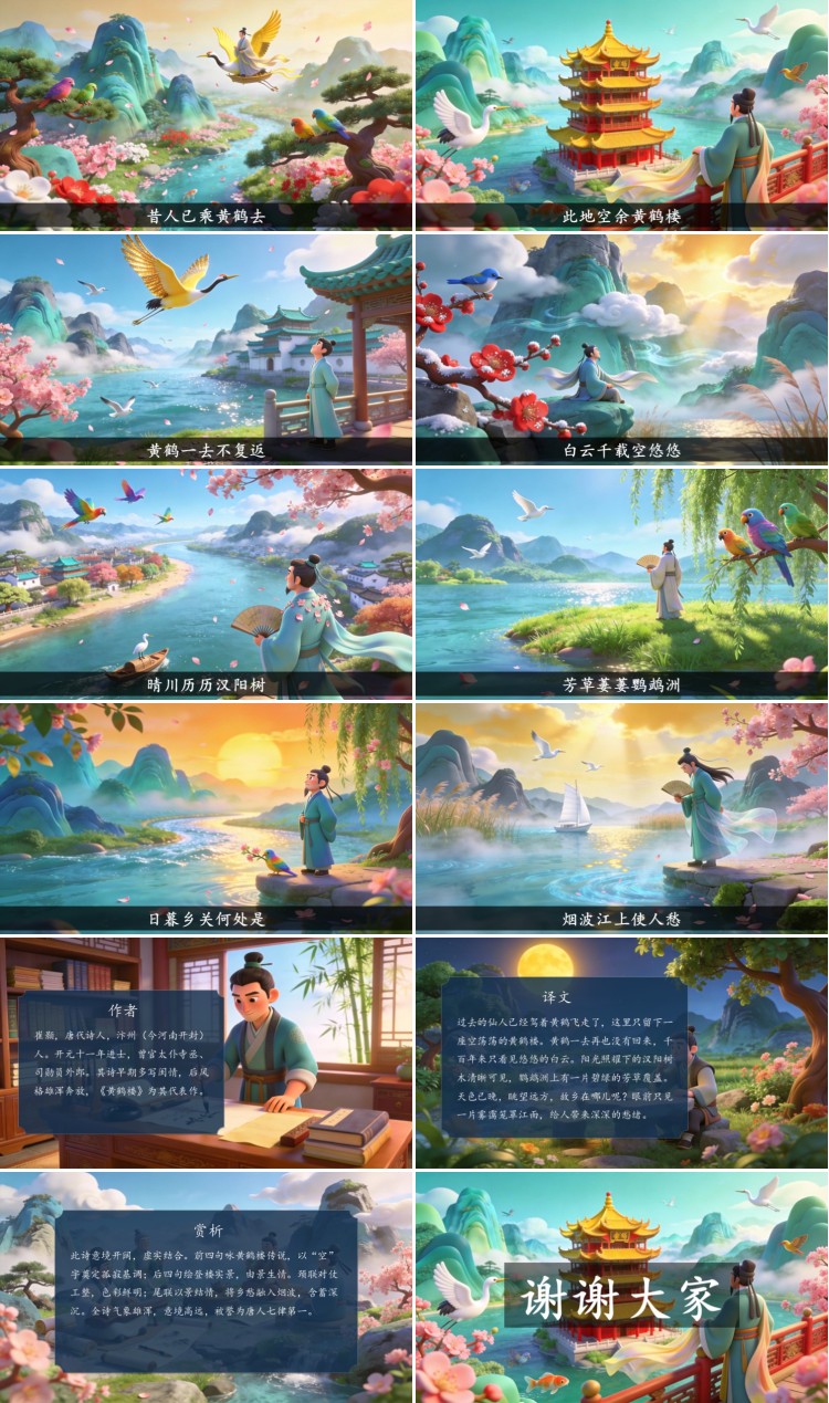 方舟绘本PPT首页 > 古诗 > 7-00055 《黄鹤楼》古诗词PPT模板