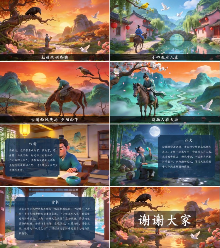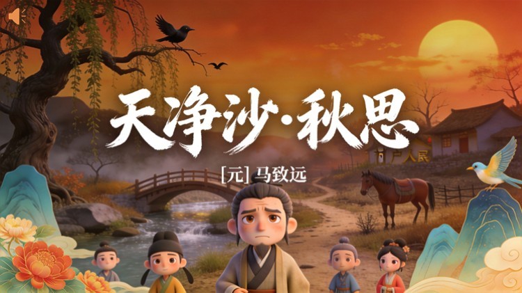 方舟绘本PPT首页 > 古诗 > 7-00060 《天净沙·秋思》古诗词PPT模板