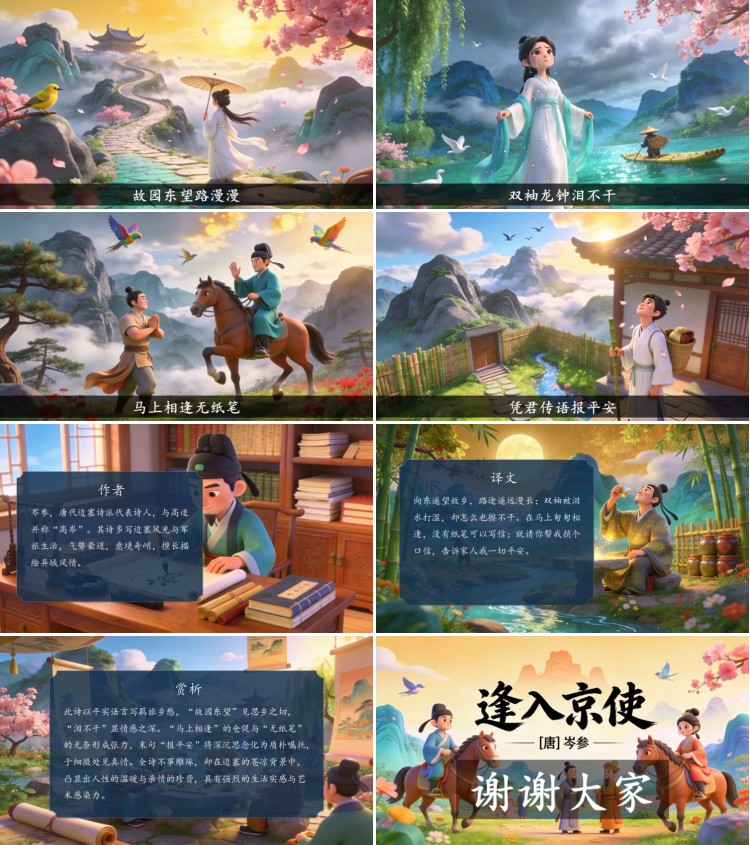 方舟绘本PPT首页 > 古诗 > 7-00061 《逢入京使》古诗词PPT模板