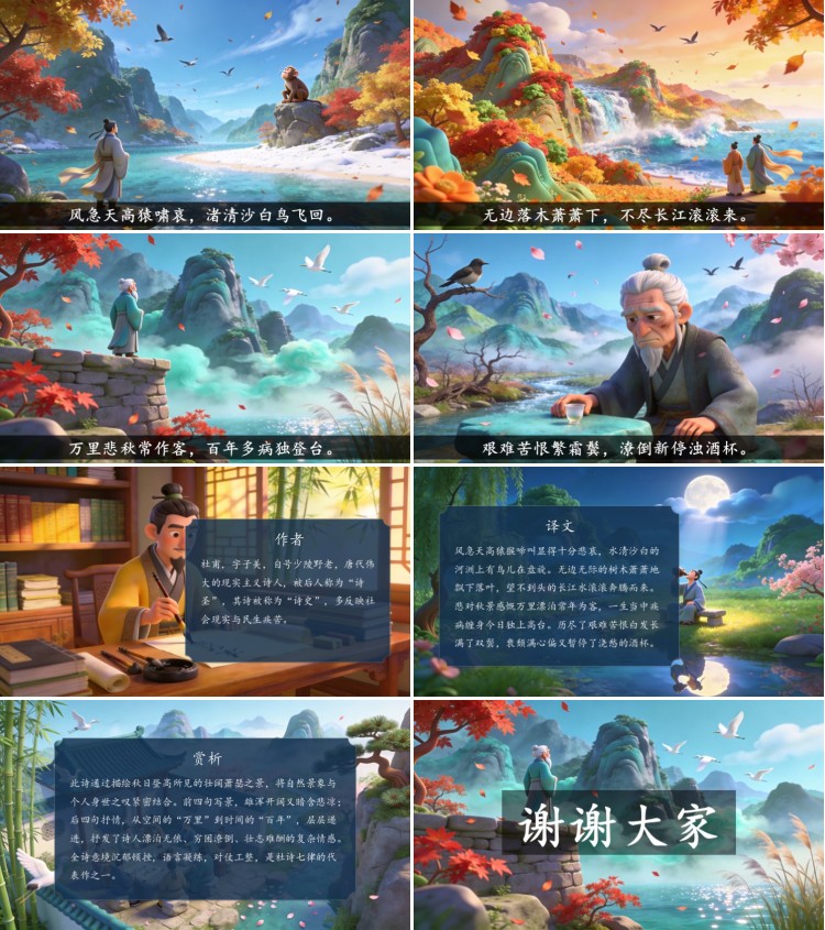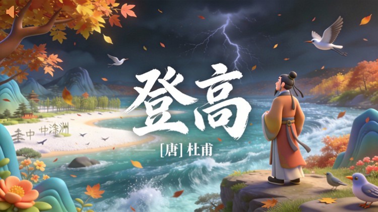 方舟绘本PPT首页 > 古诗 > 7-00068 《登高》古诗词PPT模板